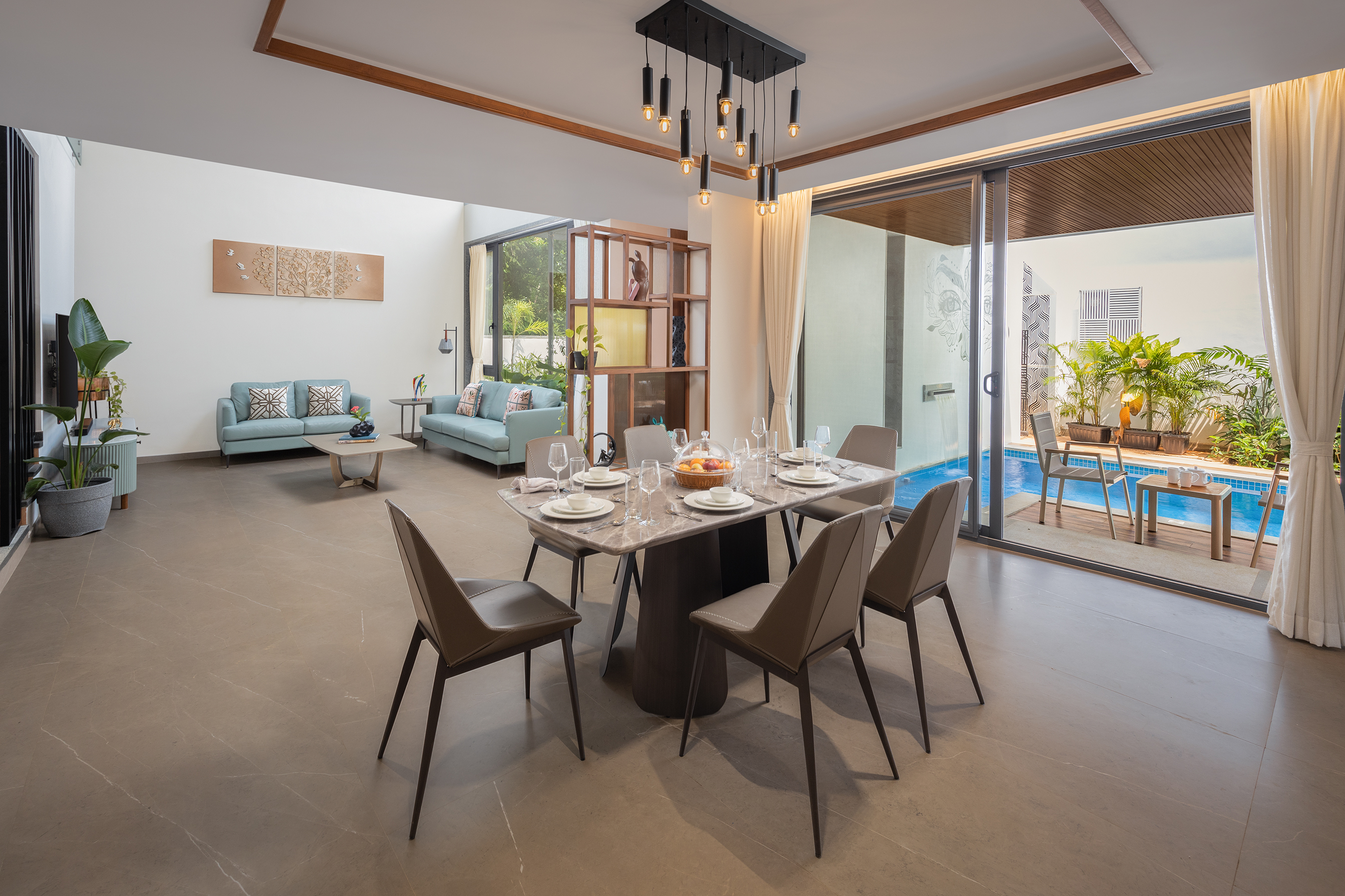 Outdoor Terrace & Lounge: A beautifully landscaped terrace with comfortable seating, perfect for dining al fresco, enjoying sunsets, or relaxing with family and friends.